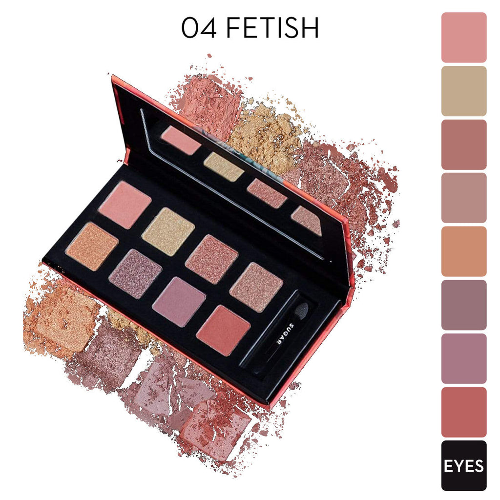 SUGAR Contour De Force Eyes And Face Palette: his multi-functional makeup palette featuring a matte blush, bronzer, and a shimmering highlighter for that endless glow and dimension. The palette also has six eyeshadow shades in matte, shimmer, and high-shine finish textures for enthralling eye makeup looks. Crafted for any style and occasion.