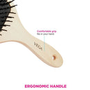 Vega Wooden Bristle Paddle Brush in large size with round tipped wooden bristles easily penetrates and stimulates the hair. It massages and distributes precious oils from the root of the hair to its ends helping maintain healthy and beautiful hair.